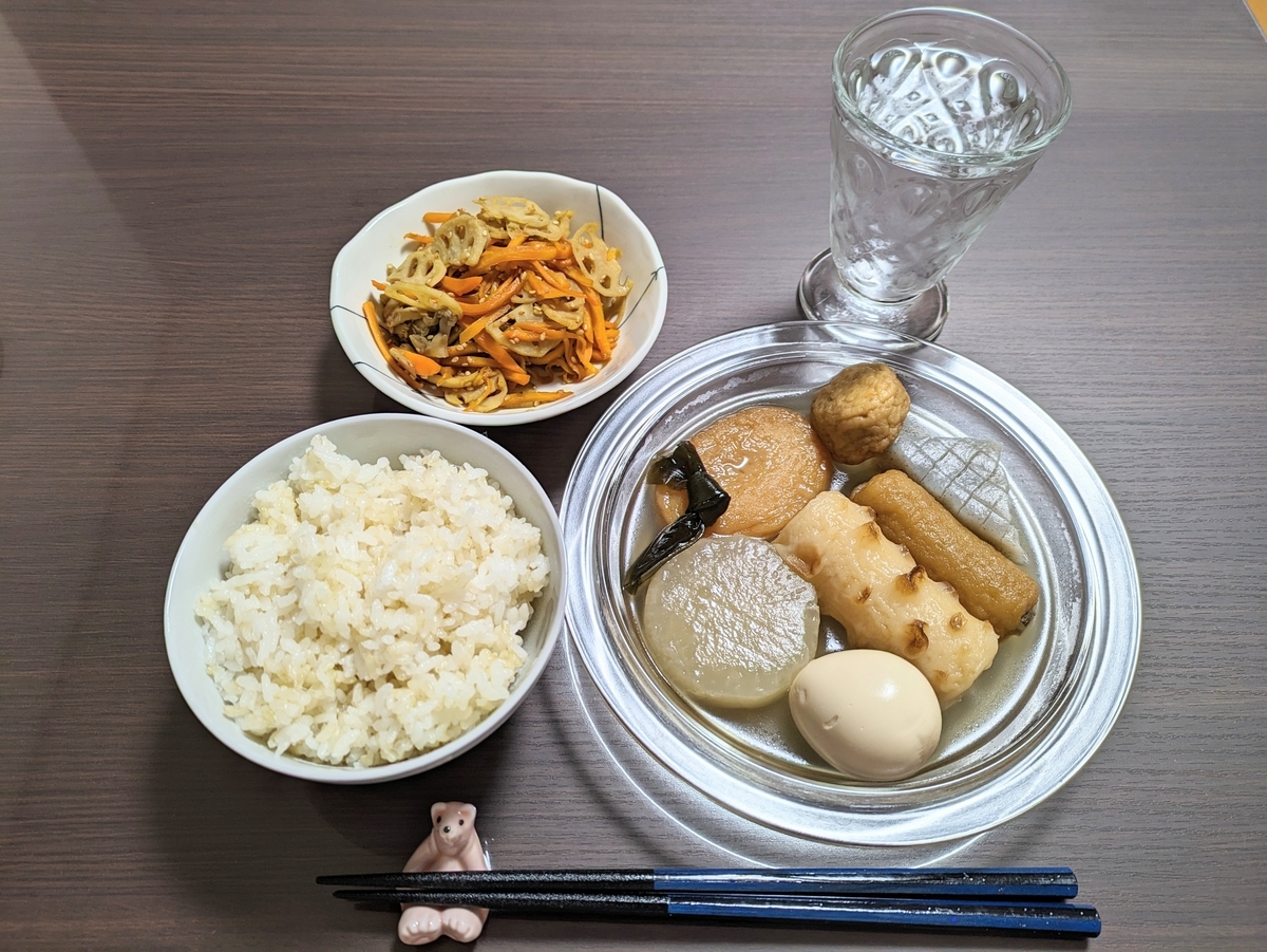 おでんはレトルトを温めただけの手抜きご飯です。